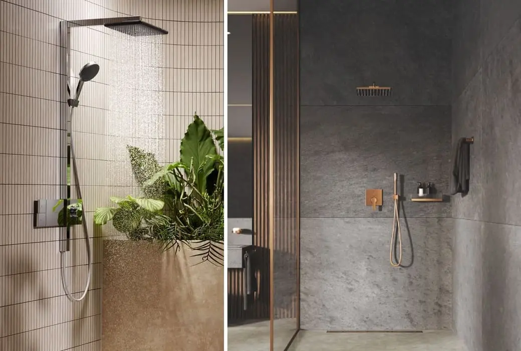 Изборът между душ система за вграждане и душ колона зависи от дизайна на банята и начина на монтаж.