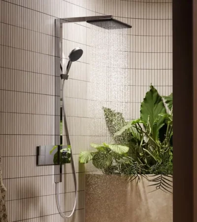 Душ система с термостатен смесител Hansgrohe Raindance Alive Q 24580000 – RainAir/PowderRain, хром