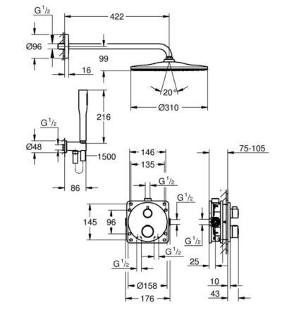 – включен хоризонтален душ рамо 430mm и вграден монтажен елемент (26 483)