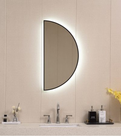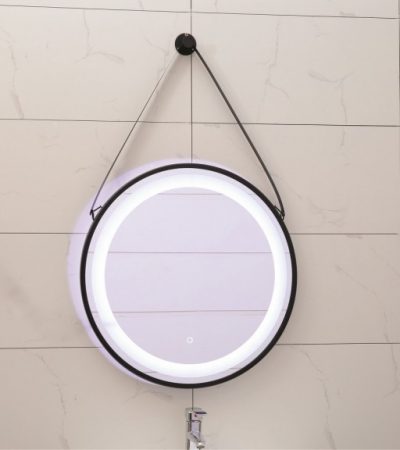 Кръгло LED огледало Ø60 см с черна стоманена рамка