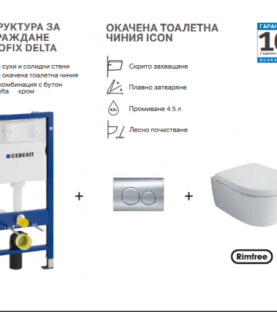 Geberit Duofix Delta 50 хром Структура за вграждане окачена тоалетна чиния Smyle – ПРОМО ПАКЕТ