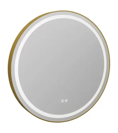 Кръгло огледало с предна светлина и златна рамка. Сензор за включване/изключване. Включва функция против запотяване. LED светлина: (студена, неутрална и топла). Димиране.