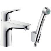 Едноръкохватков еднодупков смесител с месингов корпус и покритие лъскав хром. Предлага се в комплект с хигиенен душ, окачване и шлаух.