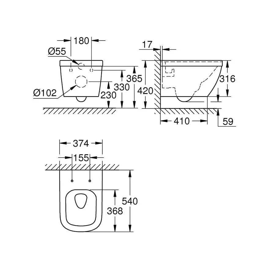 Arena Cosmopolitan GROHE Комплект за WC Solido 5 в 1, Rapid SL, 39536000/36501000 промиване Triple Vortex Flush Arena Cosmopolitan Euro Ceramic