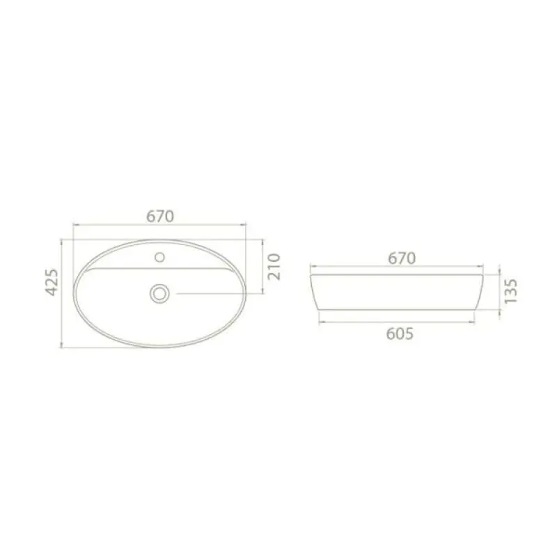 Умивалник Серия One Елипса 67 см за плот с отвор