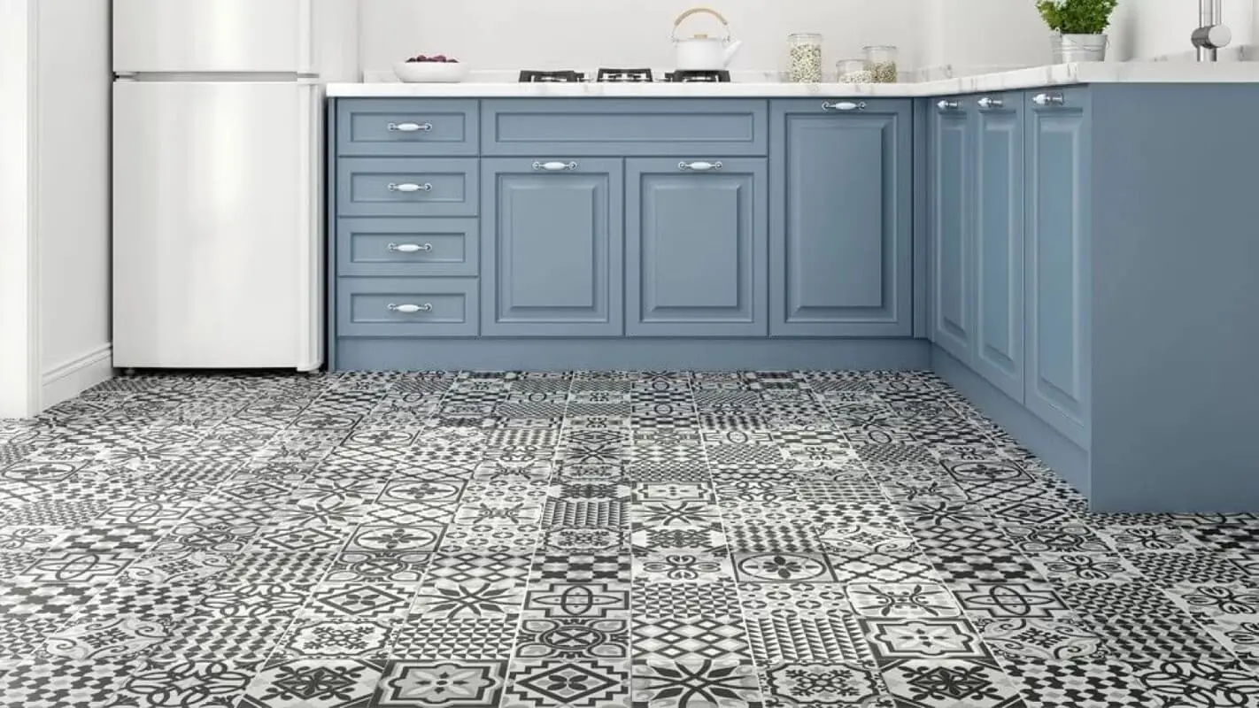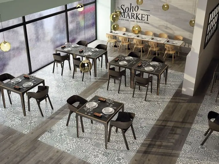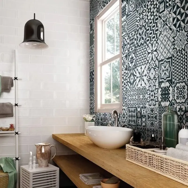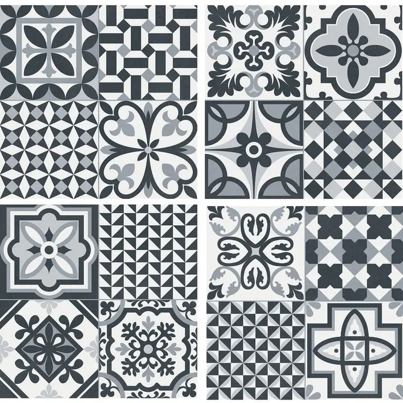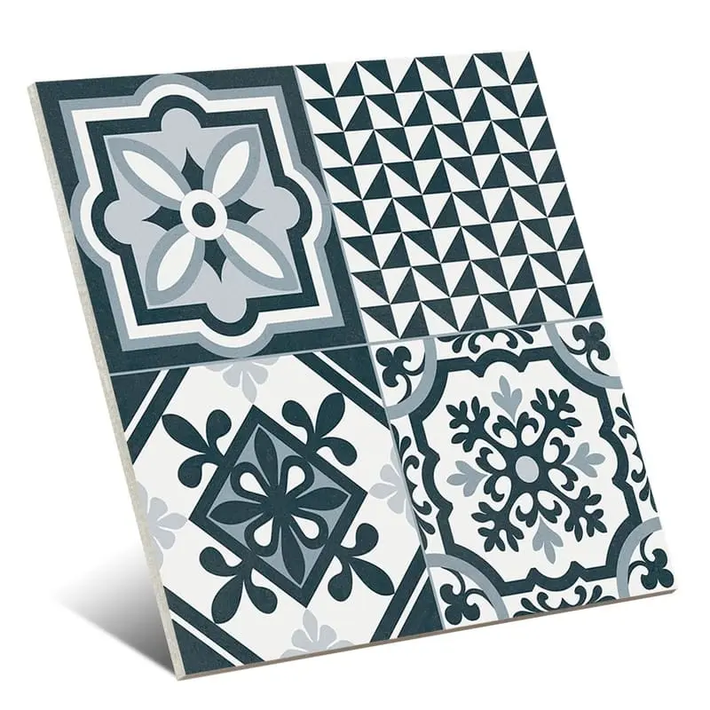 Испански гранитогрес HERITAGE Black 33.15×33.15 см с матова антихлъзгаща повърхност имитиращ patchwork. Подходящ за под и стена, вътрешно и външно приложение.