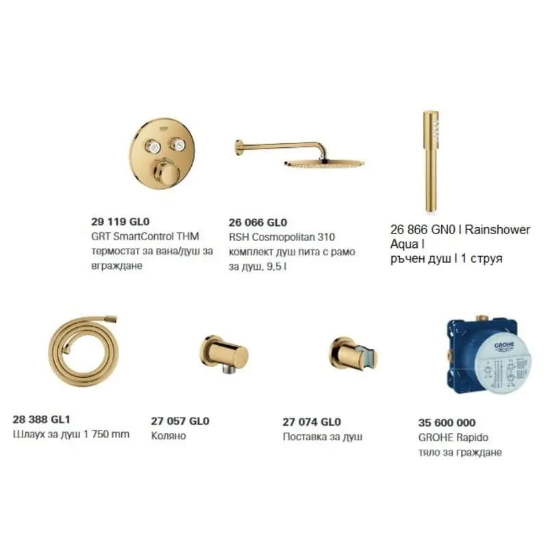 Grohtherm SmartControl, термостатен смесител за вграждане за вана/душ (29119GL0)