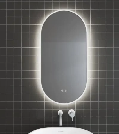 LED огледало с амбиентно осветление, бяла рамка ЛЕЙЛА1855-80W