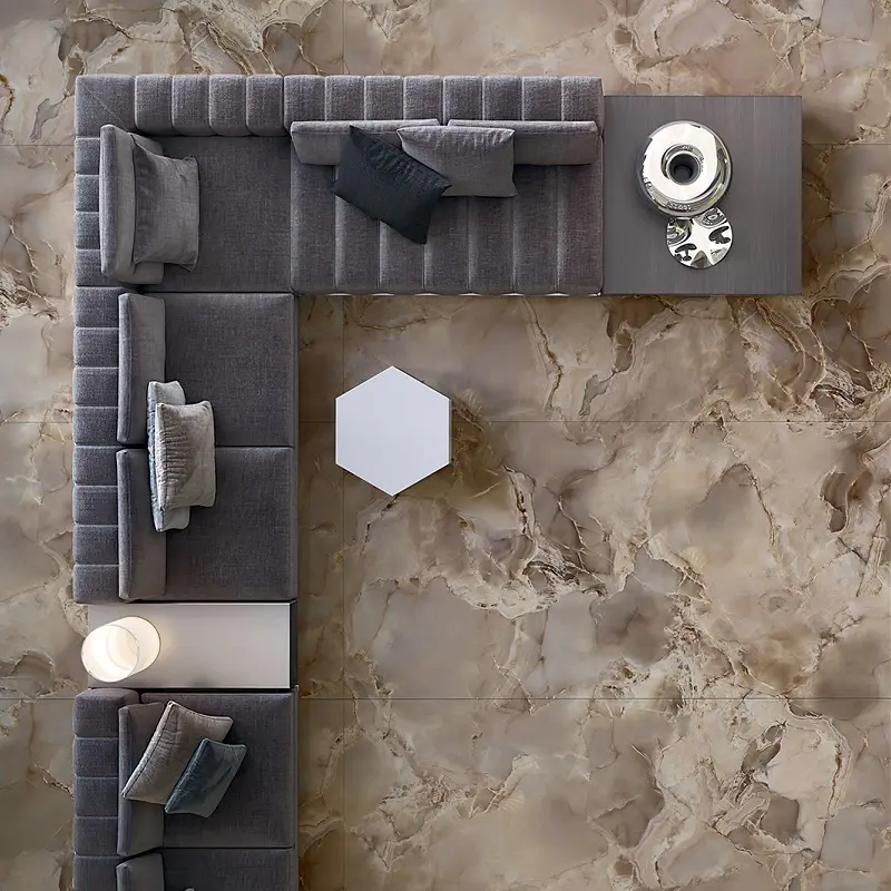 Гранитогрес ONICE REALE отдава почит на рядък вид персийски оникс; с неговите дълбоки изумрудени тонове и нотка на ексклузивност, придадена от различната интензивност на нюансите и характерното използване на цветови тонове, вариращи от сиво до бяло, от зелено до кафяво. Колекцията, която се предлага в 7 цветови варианта, е подсилена от високогланцовото покритие в размер 60х120